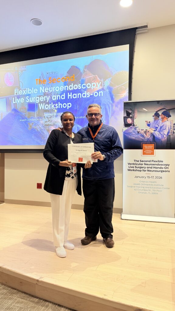 A highlight of the event was Dr. Elbabaa’s inspiring presentation of certificates of completion to Dr. Sipalo and Dr. Mbaye. Their determination and passion for advancing neurosurgical care in their home countries underscored the workshop’s global impact. Dr. Warf’s mentorship, alongside faculty luminaries Dr. Ben Warf, Dr. Michael Dewan, Dr. Jacob Lepard, Dr. Abhaya Kulkarni, Dr. Sandi Lam, Dr. Christian Diniz, Dr. Dan Donoho, Dr. Ryan Jafrani, and others, created an atmosphere of shared expertise and relentless curiosity.